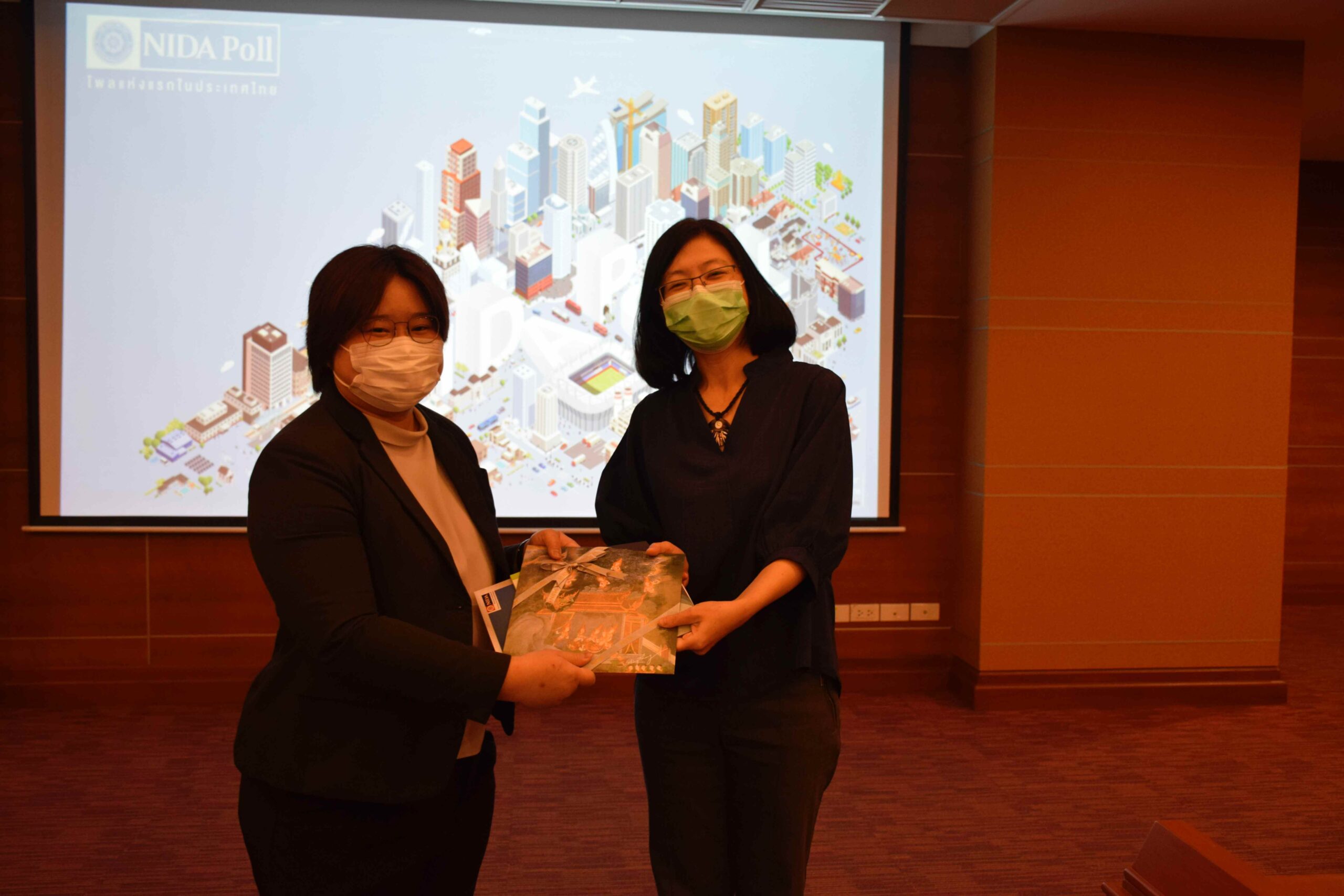 พร้อมด้วยบุคลากรของนิด้าโพลเข้าร่วมให้การต้อนรับอย่างอบอุ่น ในโอกาสนี้ คณะผู้แทนได้รับฟังการบรรยายเกี่ยวกับ